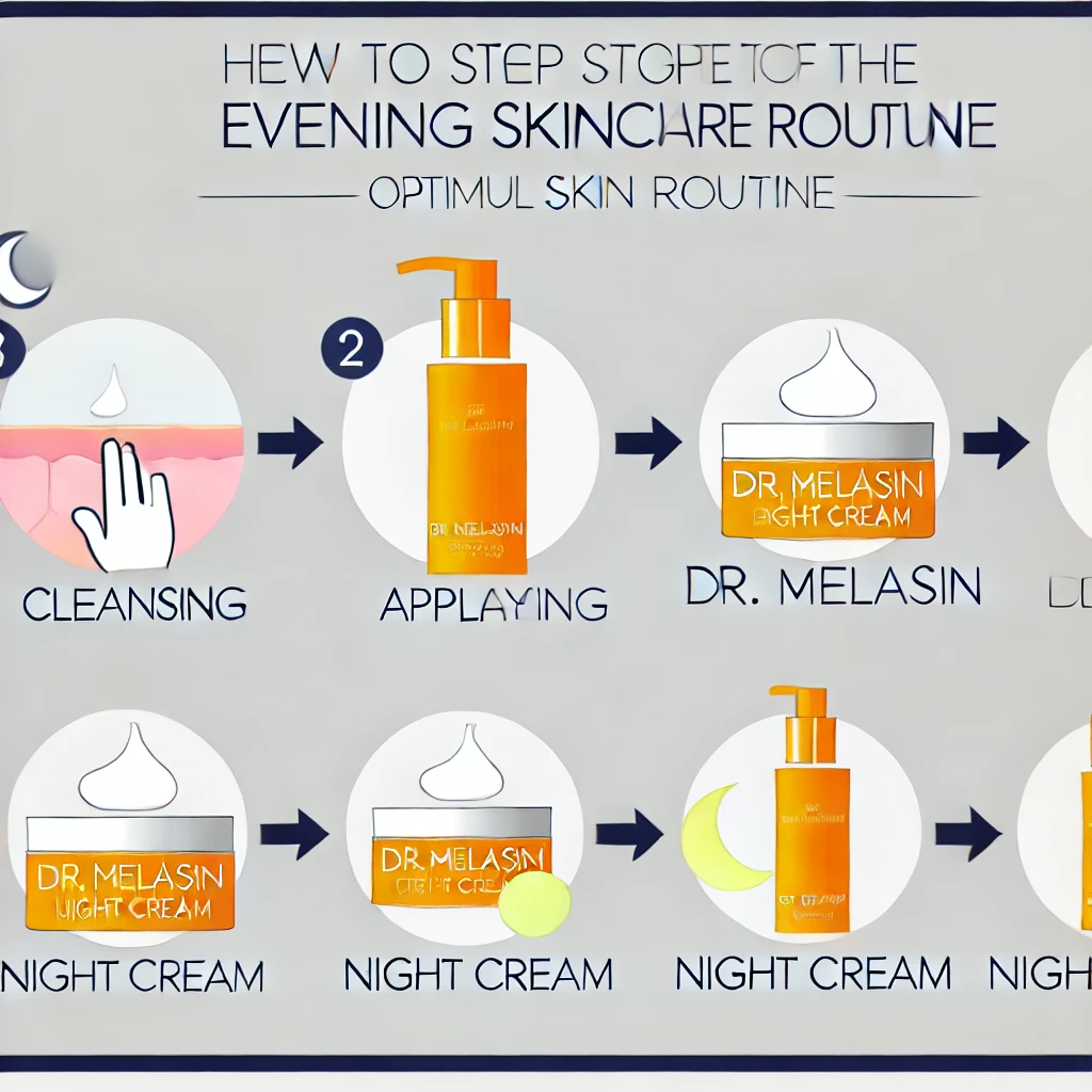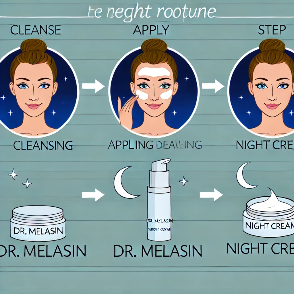 - 저녁: 클렌징 후 닥터멜라신을 발라 피부 재생 크림과 함께 사용하세요. 자는 동안 피부가 재생되면서, 닥터멜라신의 효과가 극대화됩니다.