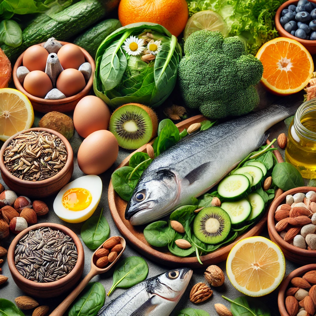 비타민 B군이 풍부한 식품(통곡물, 육류), 철분이 많은 음식(시금치, 해산물), 아연이 풍부한 견과류와 콩류 등을 섭취하는 것이 도움이 됩니다.