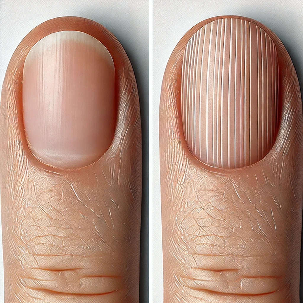 40세 이후에는 자연스럽게 손톱에 세로줄이 생길 수 있습니다. 이는 손톱의 각질층이 얇아지면서 나타나는 현상입니다. 하지만 모든 손톱 세로줄이 노화 때문에 생기는 것은 아닙니다. 특히 젊은 나이에 이런 현상이 발생하거나, 세로줄이 갑자기 두꺼워지고 선명해진다면 그 원인은 노화가 아닐 수 있습니다.