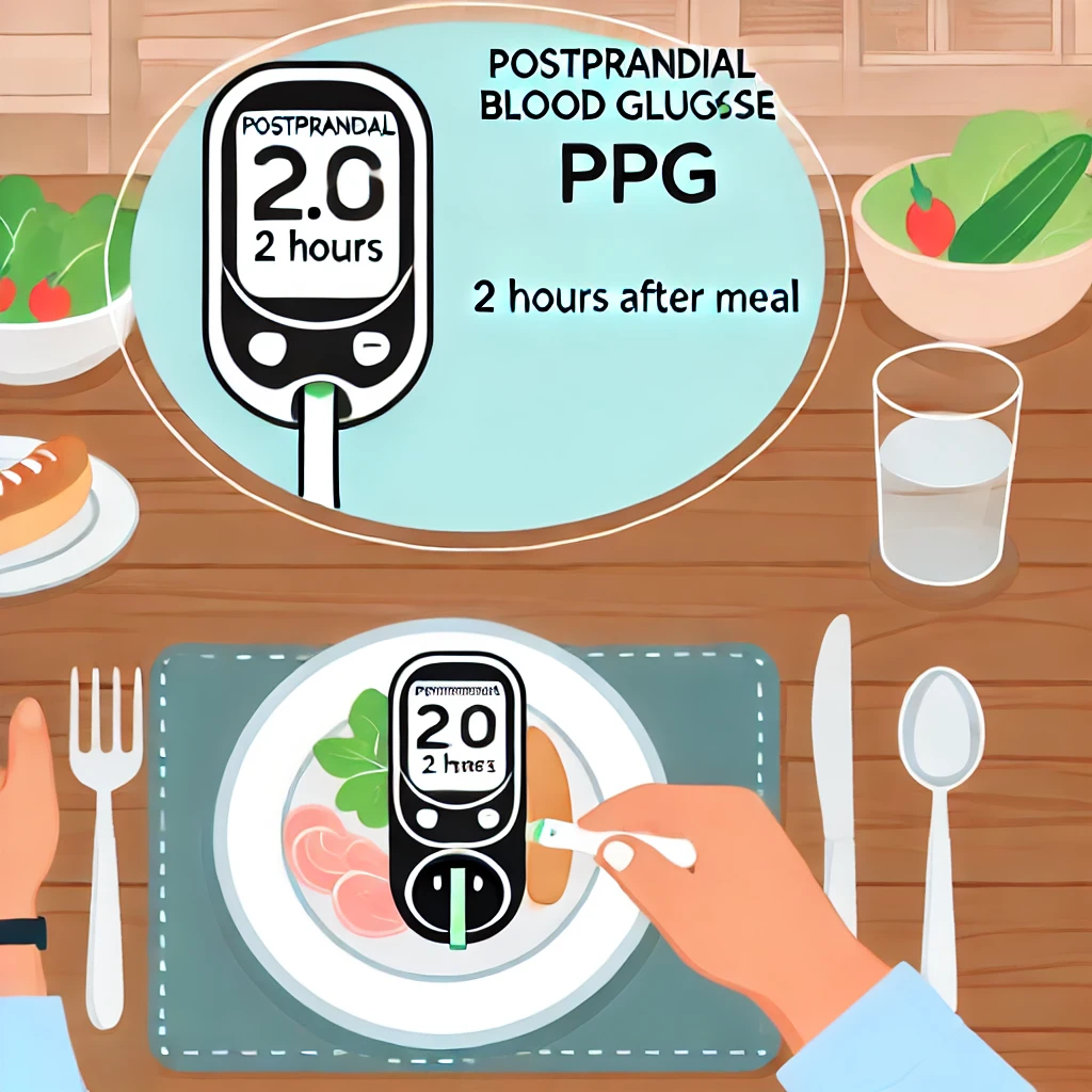 식후 2시간 혈당(Postprandial Blood Glucose, PPG)이란, 식사를 한 후 2시간이 지난 시점에서 측정한 혈당 수치를 의미합니다. 이 시점은 섭취한 음식의 탄수화물이 소화되고 혈당이 정점에 이르렀다가 점차 정상화되는 과정의 일부입니다. 식후 2시간 동안 혈당 수치가 정상 범위로 돌아오는지 확인하는 것은 당뇨병 예방 및 관리를 위해 매우 중요합니다.