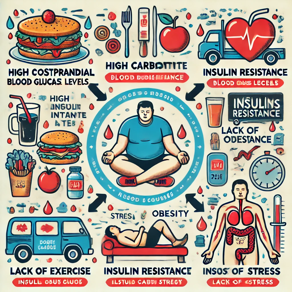 - 비만: 비만은 인슐린 저항성을 증가시키는 주요 원인으로, 이는 혈당 조절을 어렵게 만듭니다.