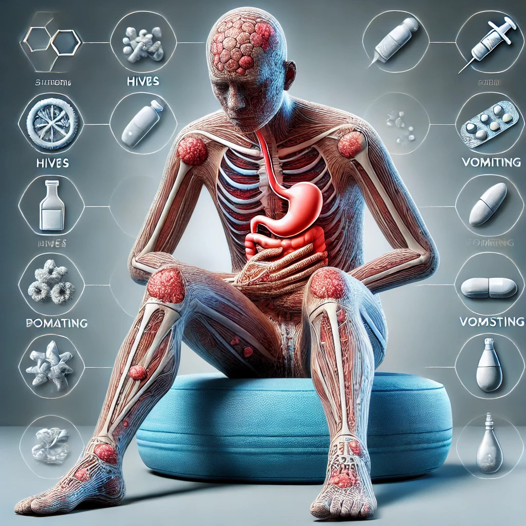 피부 발진과 두드러기: 피부가 빨갛게 변하고 두드러기가 나타나며, 심한 가려움이 동반될 수 있습니다.