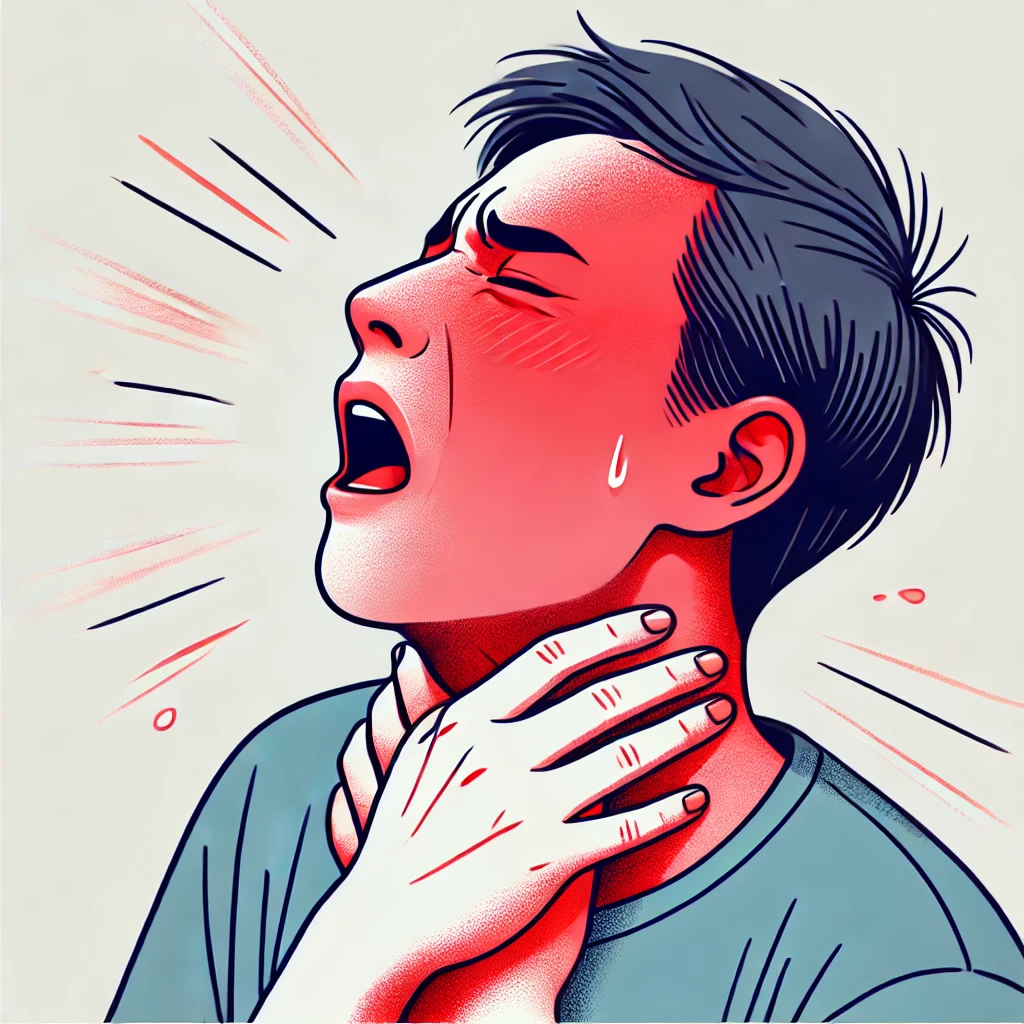 호흡 곤란: 기도가 좁아져 숨을 쉬기 어려워지고, 천명음(휘파람 소리)이 들릴 수 있습니다.