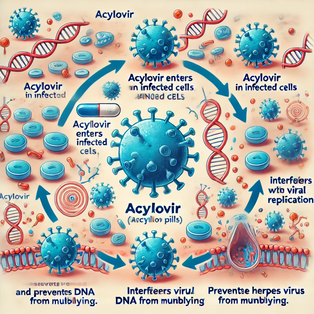 아시클로버정은 바이러스가 증식하는 것을 차단하는 원리로 작용하는데, 이는 바이러스가 세포 내에서 DNA를 복제하는 과정을 방해함으로써 이루어집니다. 그 결과, 바이러스의 증식이 억제되고 증상 완화 및 회복 속도가 빨라지죠.