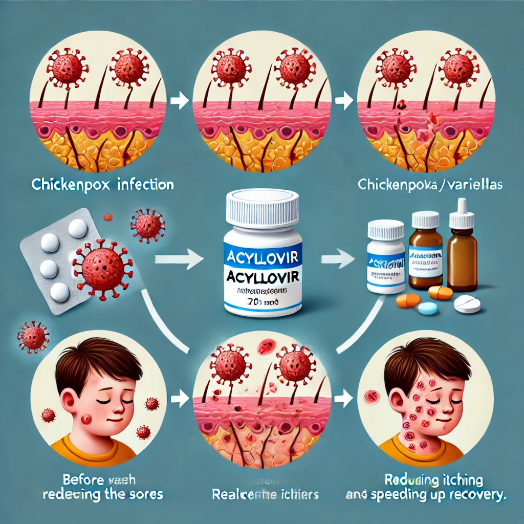 수두는 어린 시절에 흔히 걸리는 병이지만, 성인이 된 후에는 수두가 심각한 합병증을 유발할 수 있습니다. 아시클로버정은 수두 바이러스의 확산을 막아 증상을 경감시키는 역할을 합니다.