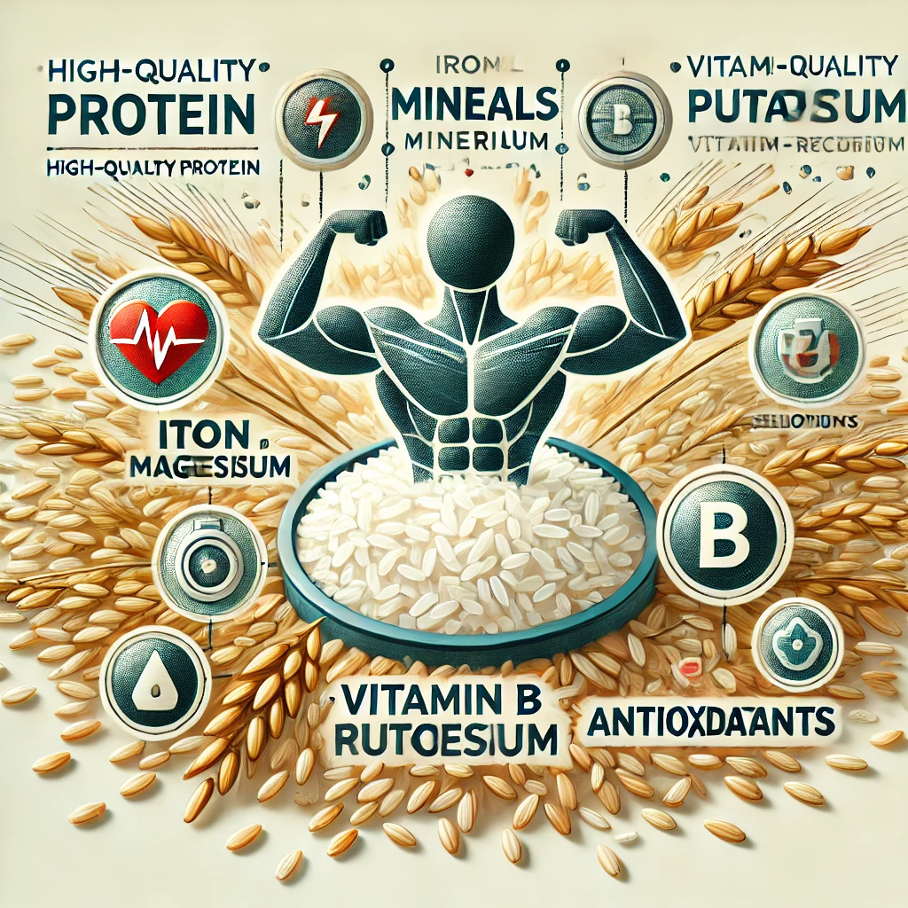 카무트쌀은 그 자체로 영양의 보고입니다. 일반 밀과 비교했을 때, 카무트쌀은 30~40% 더 많은 단백질을 함유하고 있으며, 특히 고운 질감 덕분에 소화가 잘 되는 특징이 있습니다. 또한, 다음과 같은 영양 성분들이 풍부하게 포함되어 있습니다