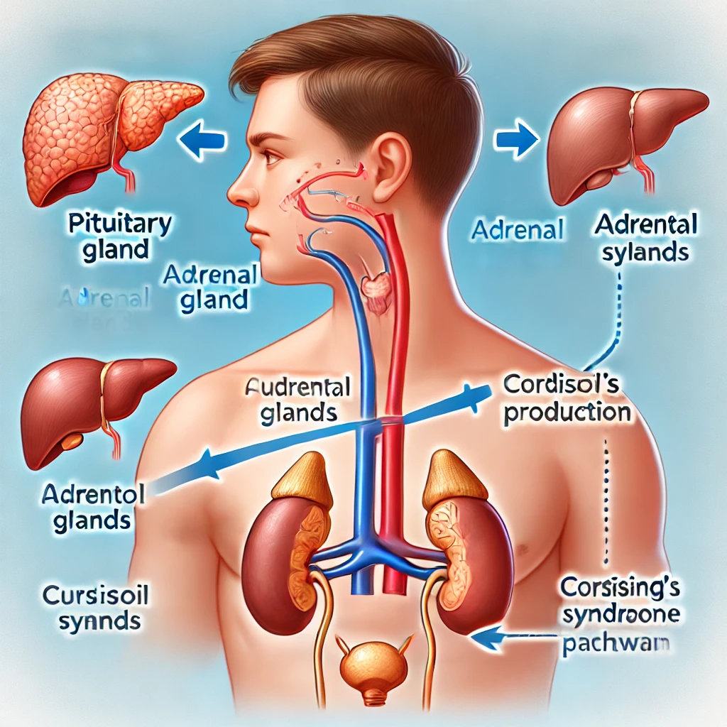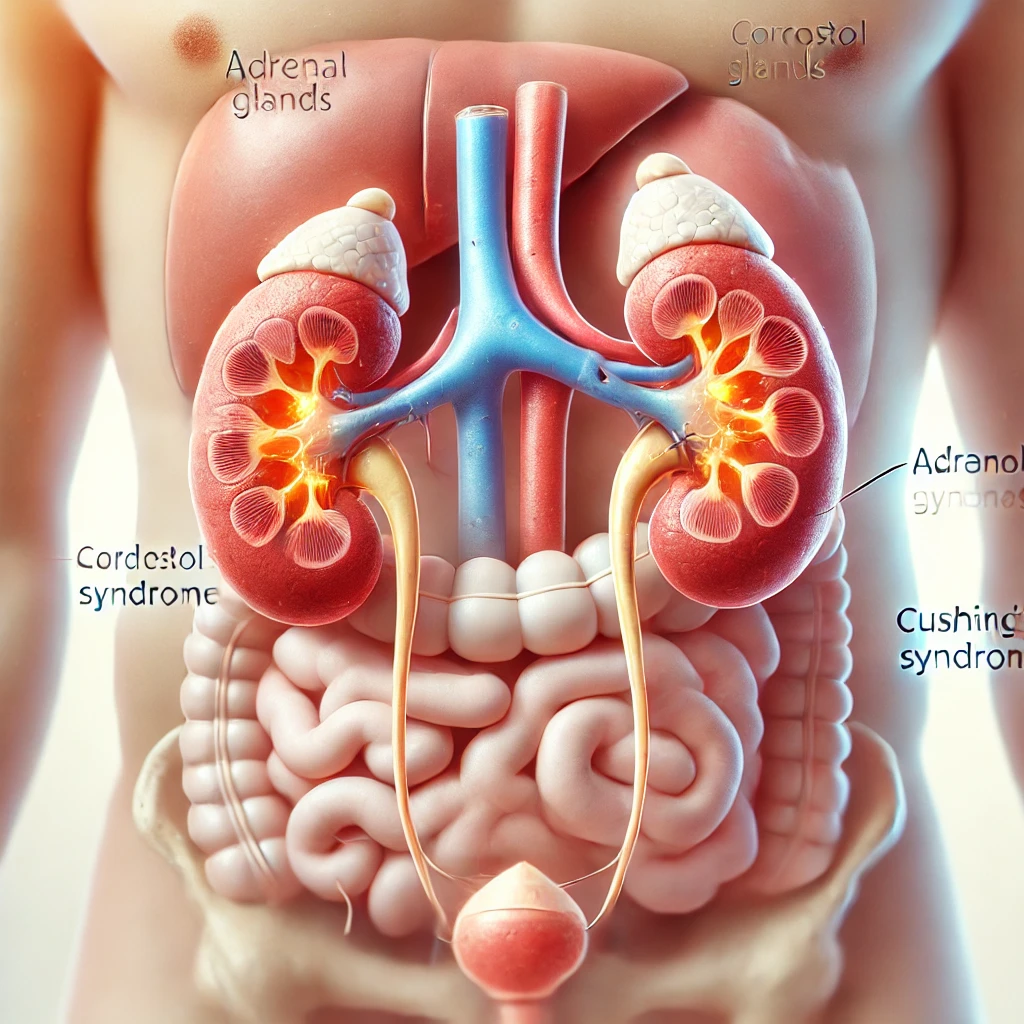부신 피질에서 코르티솔이 과다하게 분비되는 경우입니다. 주된 원인은 부신 종양이나 뇌하수체 종양(쿠싱 병)이 있습니다. 뇌하수체에서 분비되는 ACTH라는 호르몬이 부신을 자극해 코르티솔을 과다하게 생성하게 만드는 경우도 있습니다.