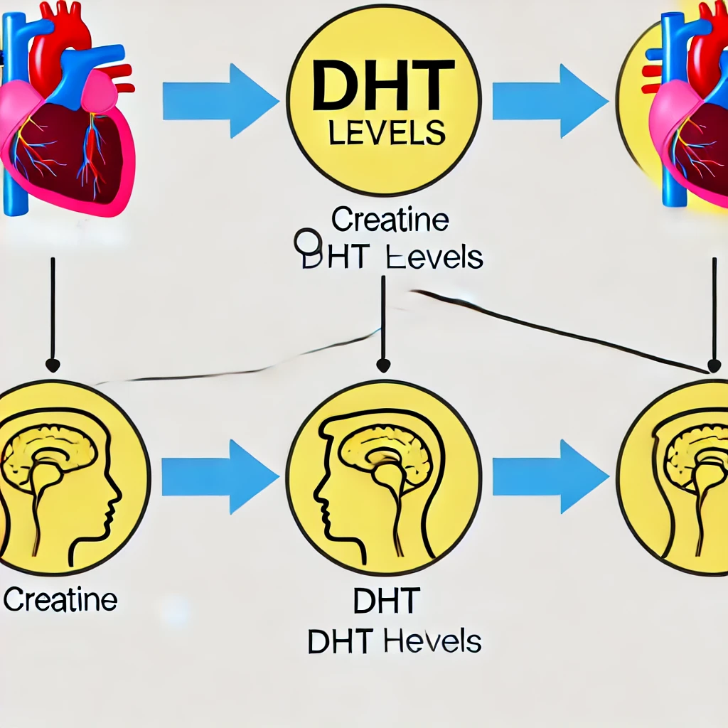 크레아틴 복용 시 DHT(디하이드로테스토스테론) 수치가 증가할 수 있다는 연구가 발표된 적이 있습니다. DHT는 안드로겐성 탈모의 주요 원인 중 하나로 알려져 있습니다. 2009년에 실시된 한 소규모 연구에 따르면, 크레아틴을 복용한 사람들의 DHT 수치가 상승했으며, 이로 인해 탈모와의 연관성이 제기되었습니다. 하지만 해당 연구는 소규모에 불과하며, DHT 수치의 증가가 반드시 탈모로 이어진다고 확정하기에는 무리가 있습니다.