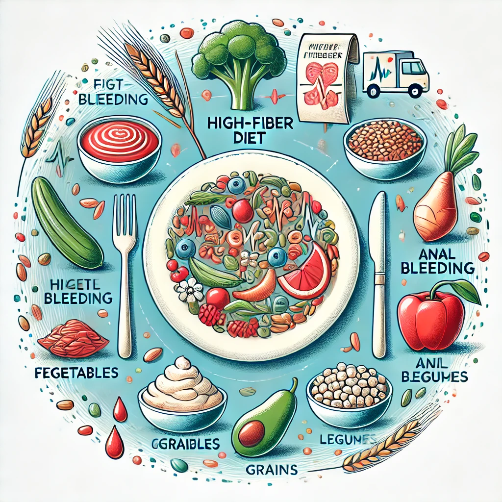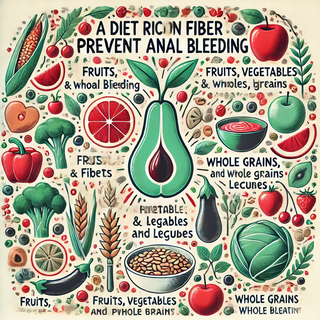 변비가 항문 출혈의 주요 원인 중 하나입니다. 식이섬유가 풍부한 과일, 채소, 통곡물을 충분히 섭취하여 변을 부드럽게 만들어야 합니다.