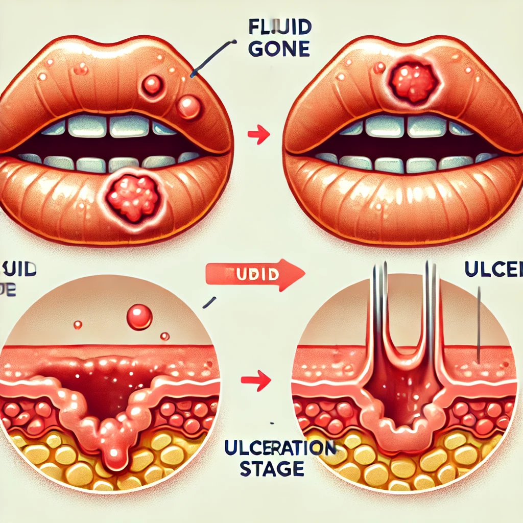 - 물집 형성: 입술이나 입가에 작은 물집들이 나타나며, 이 물집은 투명한 액체로 가득 차 있습니다. 물집은 시간이 지나면서 터지고 궤양으로 변할 수 있습니다.