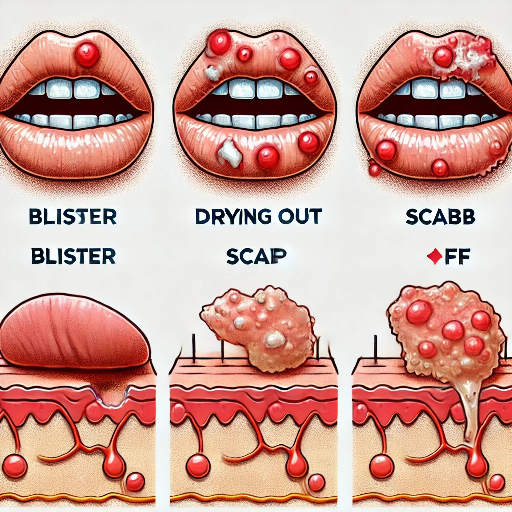 입술 헤르페스는 일반적으로 다음과 같은 단계로 진행됩니다: